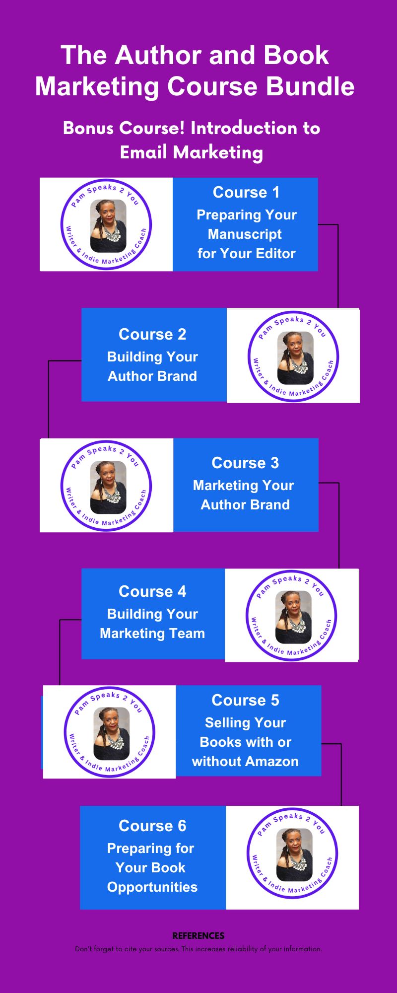 In 2021, Pamela founded her 4th company, the TeamOwens313 Global Creative Community, concentrating on writing articles and books and offering courses on book marketing for self-published authors and marketing for solopreneurs and small group and one-on-one business coaching.